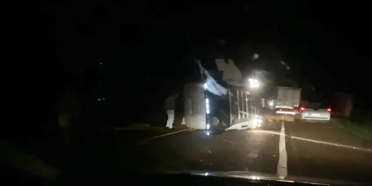 De acordo com informações , o motorista da carreta bitrem carregada de soja teria sido surpreendido por uma manobra que fechou seu espaço na pista. Como resultado, o motorista da carreta perdeu o controle do veículo e saiu da pista.