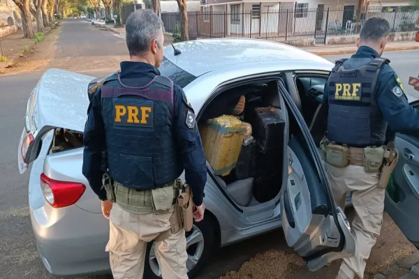 Em fiscalização nesse veículo foram encontrados nas partes internas e também no bagageiro, divididos em trabletes, 588 kg de maconha. Também os policiais constataram que as placas ostentadas eram falsas, porém as placas verdadeiras não indicaram a ocorrência de furto ou roubo.