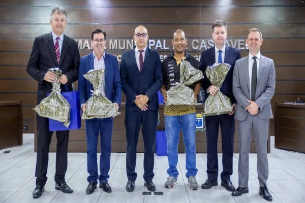 Os policiais penais que atuam em Catanduvas e em todo o Paraná realizaram uma homenagem nesta quinta-feira (31) para expressar seu reconhecimento à Comissão de Segurança Pública e Trânsito da Câmara, formada pelos vereadores Policial Madril, Sadi Kisiel e Pedro Sampaio e ao presidente da Casa, Alécio Espínola, pela criação da Medalha de Honra ao Mérito em Segurança Pública Melissa de Almeida Araújo, concedida a profissionais da área de segurança pública lotados em Cascavel e que tenham se destacado por sua atuação.