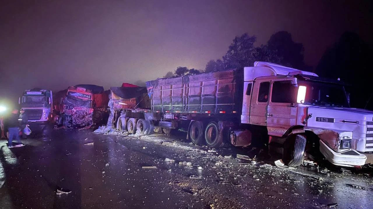 Imagens fortes: BR-277 segue parcialmente interditada após engavetamento com mais de 50 carros