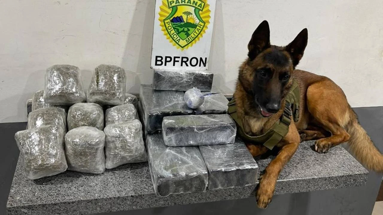 Na noite desta segunda-feira (04/09), em uma ação no âmbito da Operação Hórus, uma equipe do Pelotão de Operações com Cães efetuou a abordagem de um ônibus na rodoviária de Cascavel. Com a ajuda de um cão de faro especialmente treinado, a equipe identificou uma mala com indicativos de conter entorpecentes. Após a abertura da bagagem, foram encontradas diversas porções de maconha prensada, totalizando aproximadamente 18 quilogramas, além de 5 quilogramas de capulho e 264 gramas de haxixe.