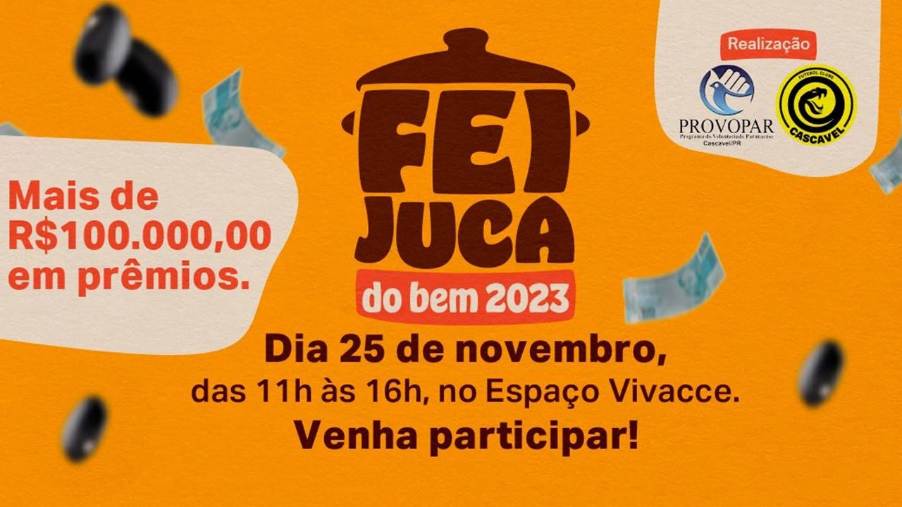 Feijuca do Bem - A Feijuca é uma oportunidade para a sociedade cascavelense conhecer e colaborar com o trabalho que vem sendo realizado há 36 anos pelo Provopar. Há quase quatro décadas, famílias em situação de vulnerabilidade social encontram na entidade o alento e amparo para seguir a vida com dignidade. O propósito da entidade vai além de garantir as refeições e vestimentas básicas necessárias. Por meio de oficinas e cursos, a instituição promove a profissionalização de homens e mulheres, devolvendo a eles autonomia.