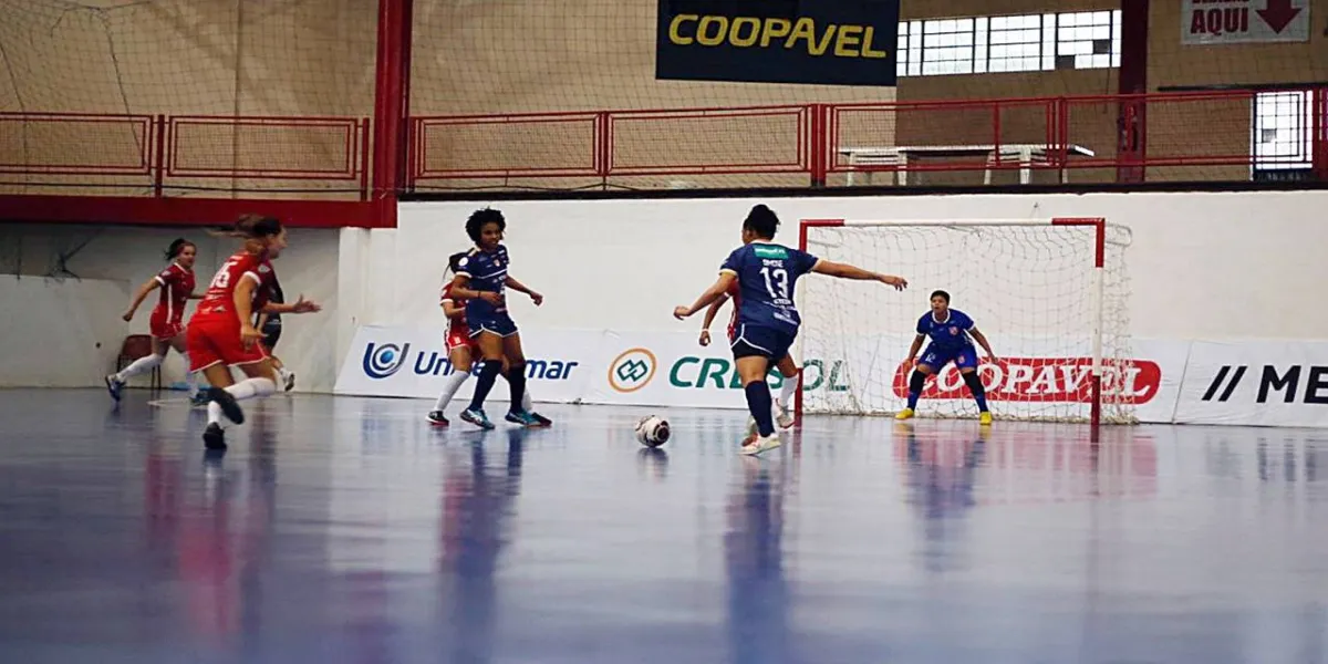 A equipe cascavelense demonstrou um desempenho impressionante desde o início do jogo, pressionando o adversário de forma consistente. O placar foi aberto por Simone, que marcou o primeiro gol para o Stein. Thaila aumentou a vantagem, e a goleira Júlia surpreendeu com um belo chute de fora da área, ampliando ainda mais o placar. Ainda no primeiro tempo, Jaque Nunes marcou o quarto gol e Duda o quinto.