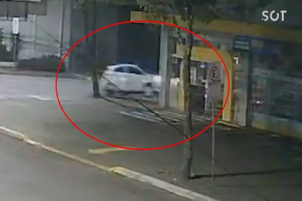 O impacto foi tão significativo que a condutora do Hyundai HB20 perdeu o controle do veículo, subiu na calçada e colidiu com a fachada de vidro de uma farmácia, chegando a adentrar o interior do estabelecimento. Felizmente, a motorista não sofreu ferimentos graves.