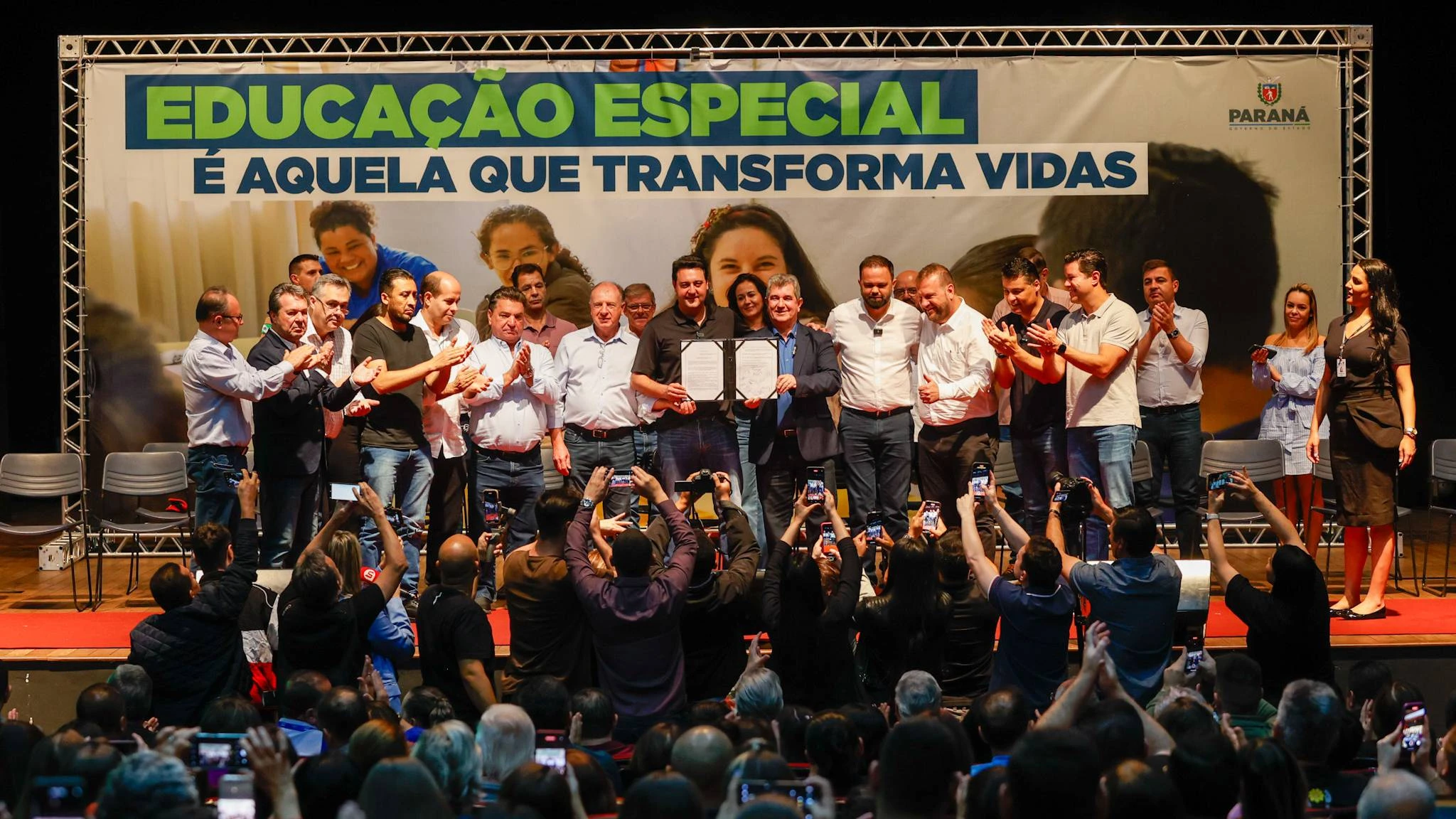 O governador Carlos Massa Ratinho Junior assinou neste sábado (16), em Arapongas, o Termo de Colaboração que garante o repasse anual de R$ 480 milhões do Governo do Estado para as escolas de Educação Especial do Paraná até 2027, totalizando um investimento de R$ 1,9 bilhão para estas instituições. A medida beneficiará mais de 40 mil estudantes com deficiências de todas as idades e familiares ligados a estas unidades de ensino nos 399 municípios paraenses.