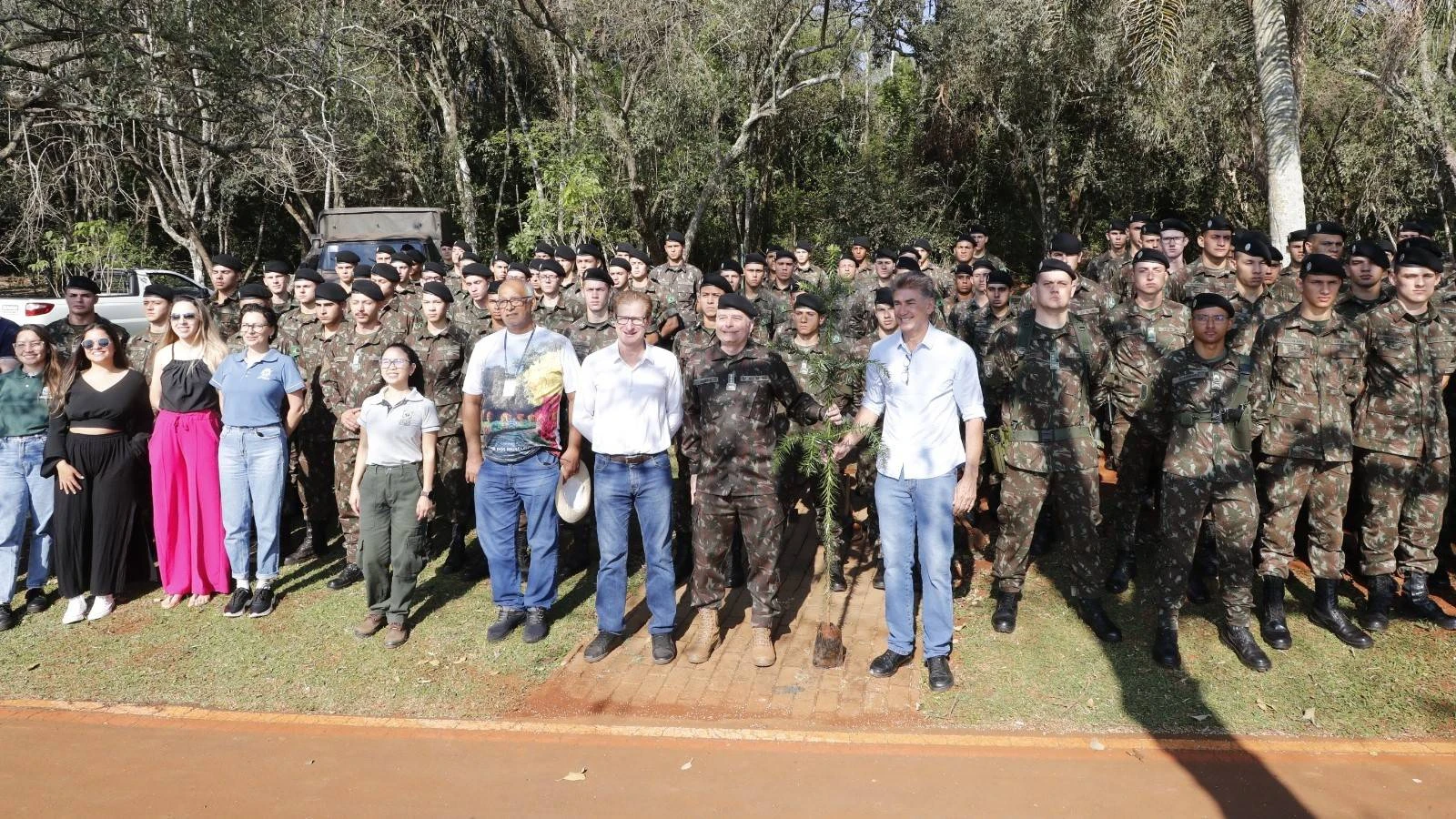 O prefeito Leonaldo Paranhos participou do início do plantio das árvores ao lado do secretário de Meio Ambiente, Nei Haveroth, e do coronel Ângelo Moreira Carnaval, da 15ª Brigada de Infantaria Mecanizada. Ele destacou a parceria com o Exército na ação ambiental.