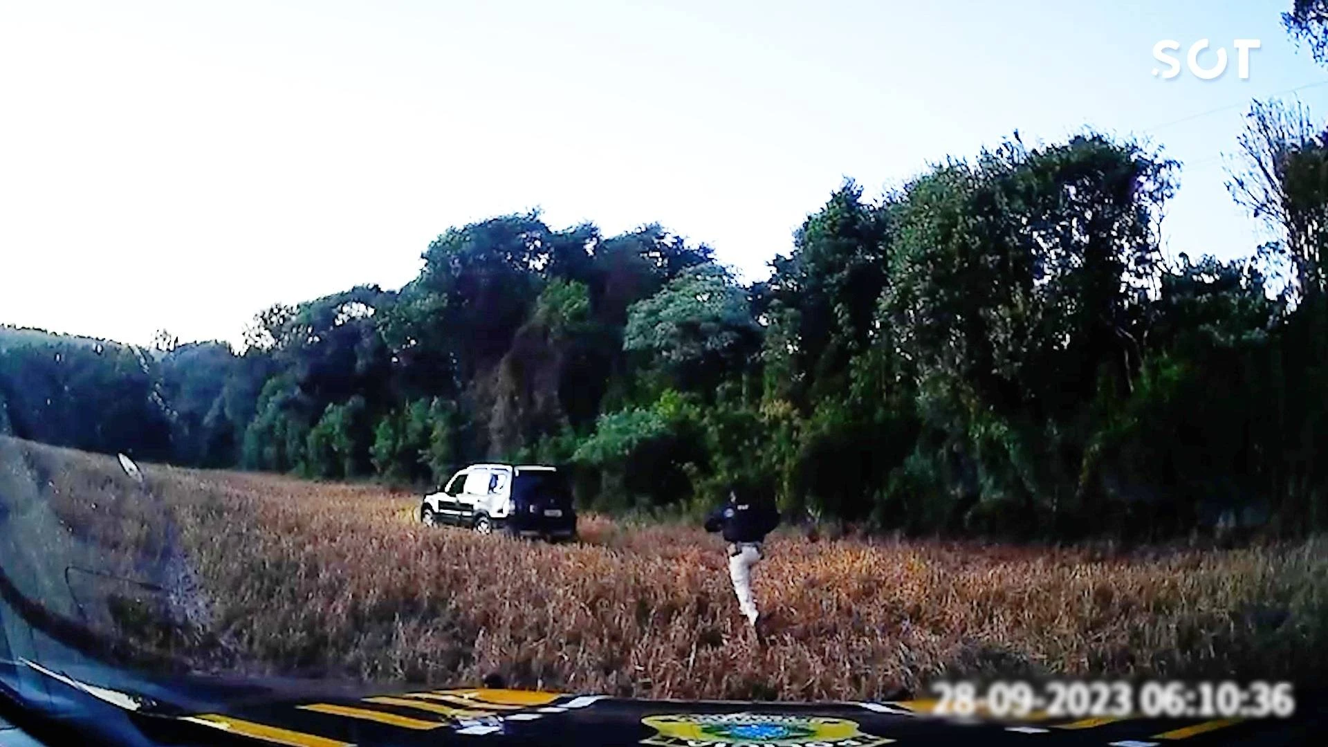 No entanto, o condutor acabou abandonando o veículo e tentou fugir para uma área de mata, mas foi capturado e levado para a delegacia da Polícia Federal.