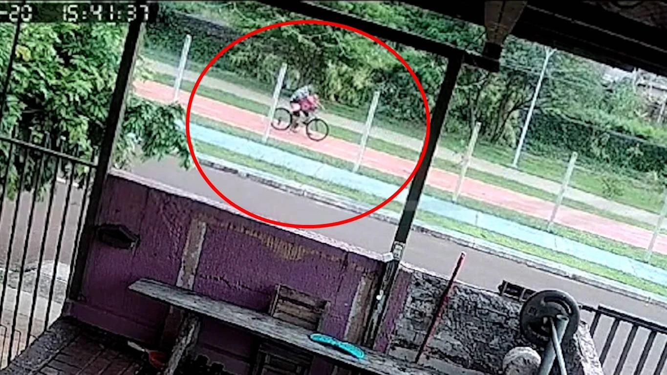 Imagem mostra vítima de estupro sendo levada de bicicleta pelo suspeito no Ecopark Oeste