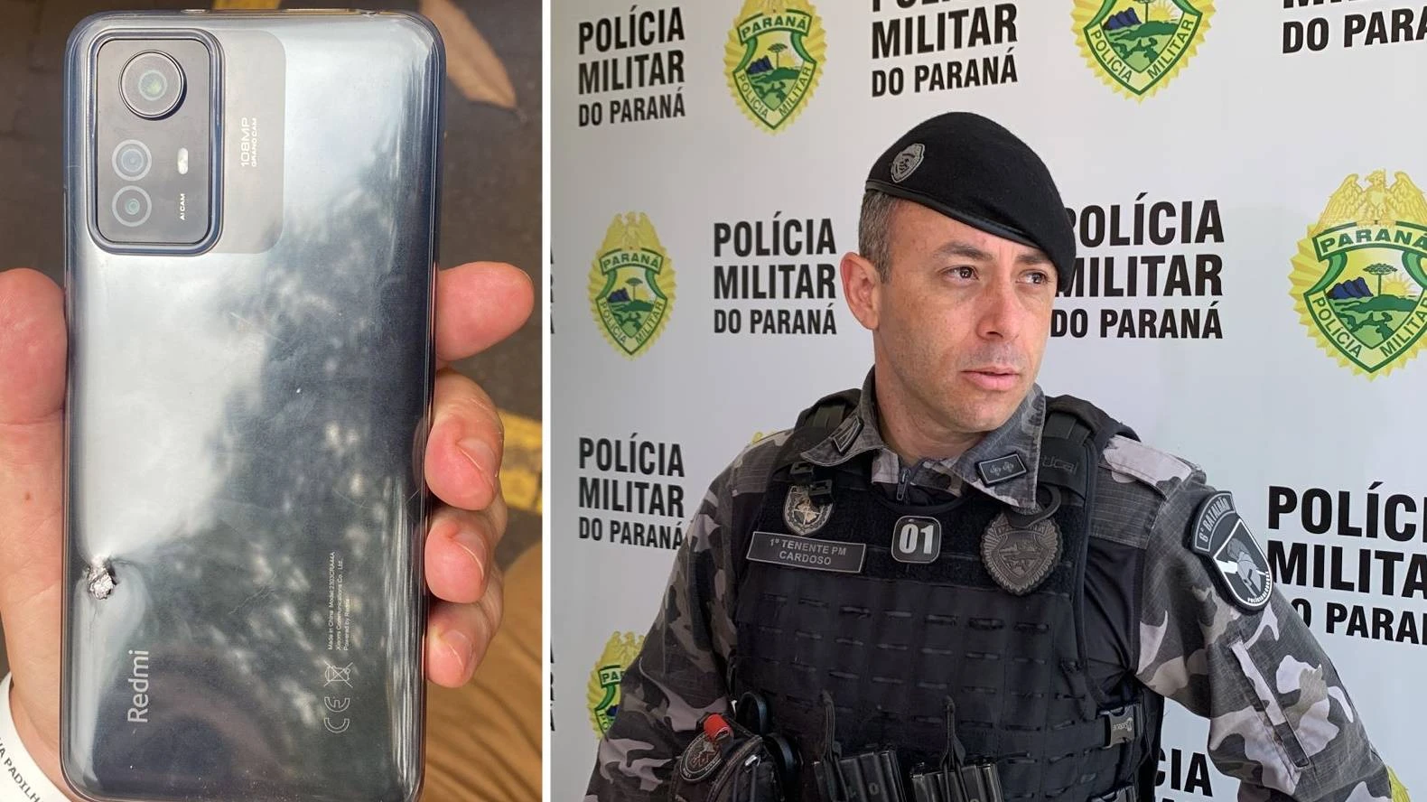 Um policial militar escapou ileso de um tiroteio com um contrabandista graças a um celular que estava em seu colete balístico na tarde da última quarta-feira (25) na Rua João Wichoski, no Bairro Cascavel Velho, em Cascavel.