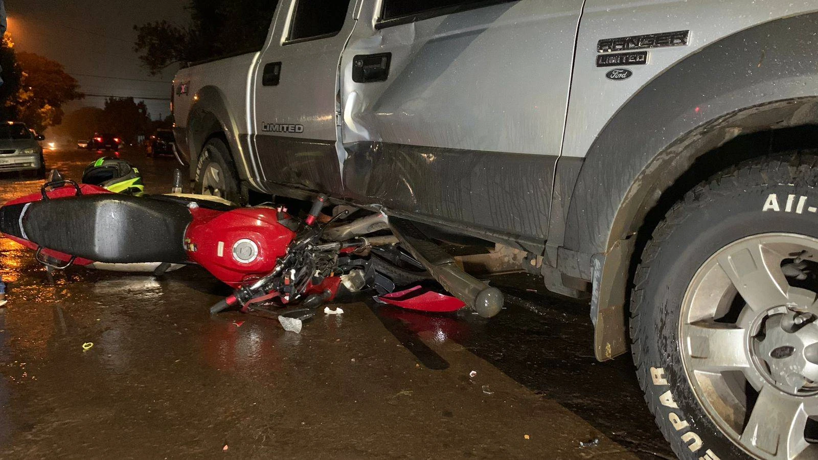 Na noite deste sábado (28/10), um motociclista ficou ferido após uma colisão com uma caminhonete no bairro Jardim Colonial, em Cascavel, no oeste do Paraná.