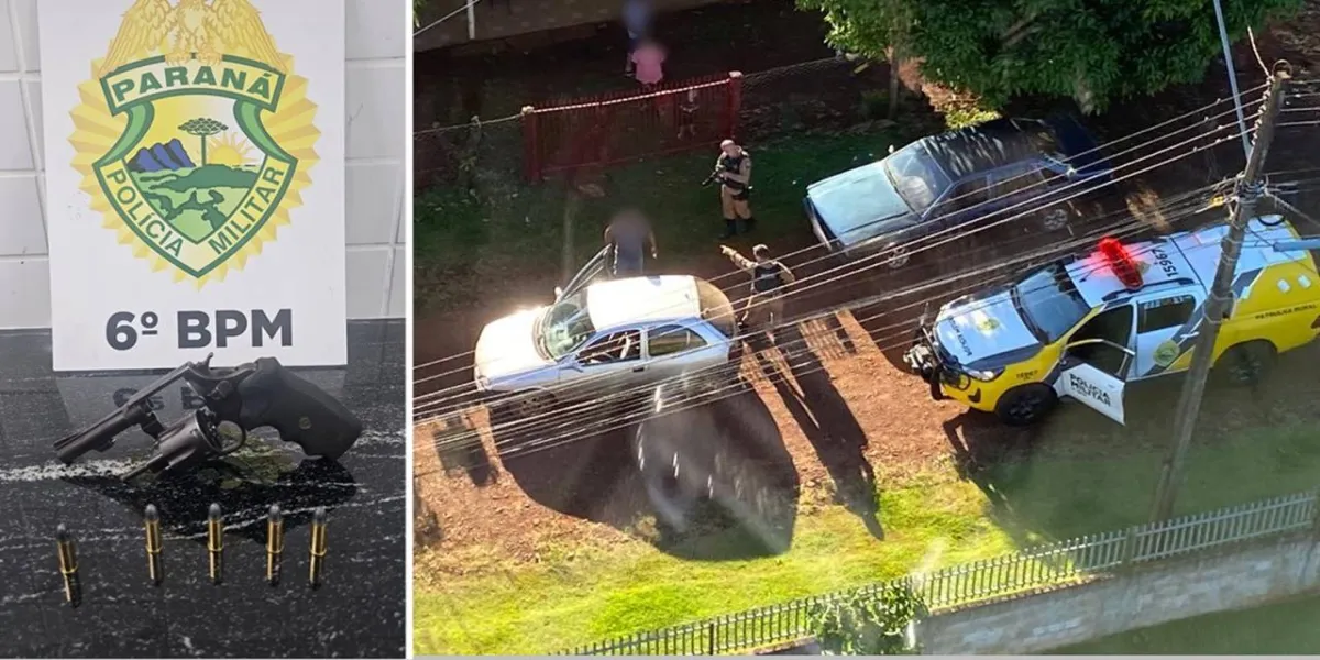 De acordo com informações fornecidas via COPOM, indicando que um veículo Corsa estaria transportando uma arma de fogo em seu interior. As equipes prontamente se deslocaram para a localização do veículo mencionado, e após minuciosas buscas nas imediações, conseguiram localizar um Revolver Calibre 32, acompanhado de cinco munições intactas.