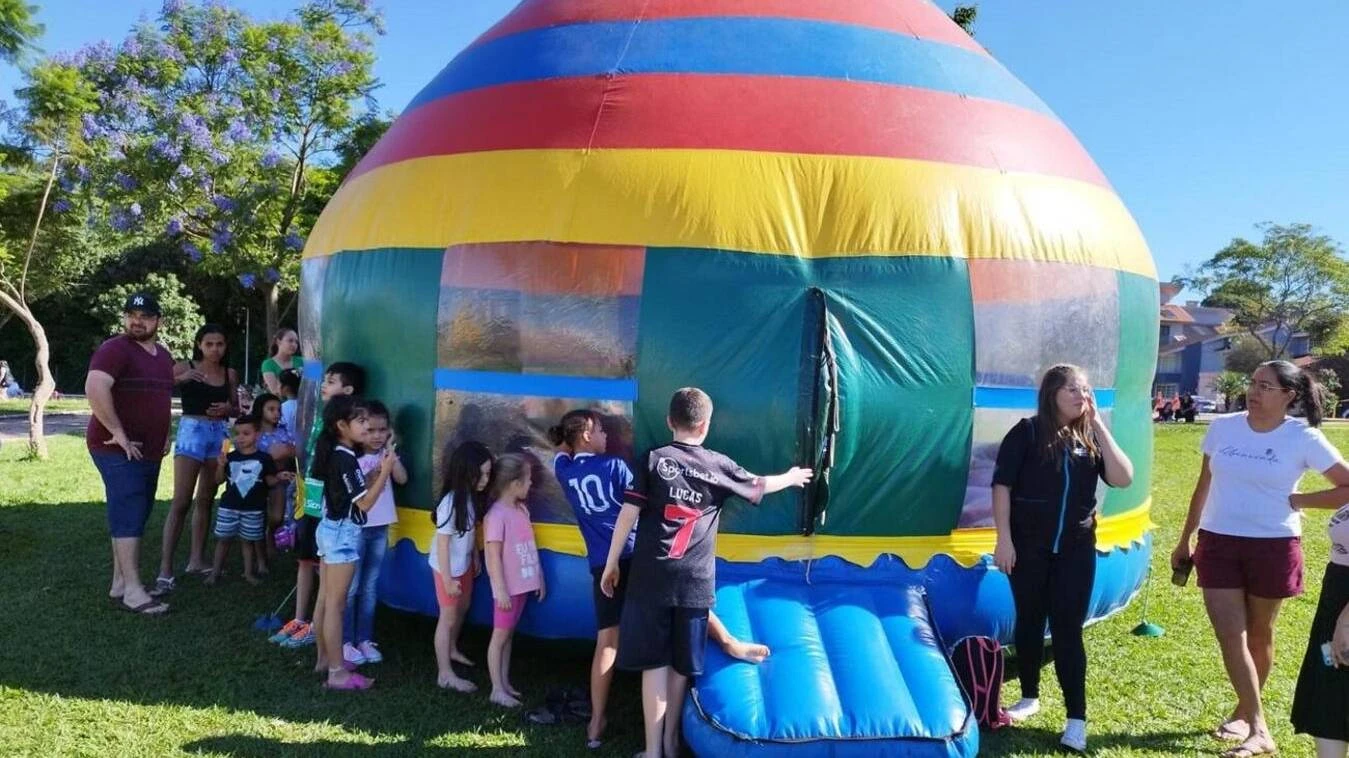 TOLEDO - O Parque Ecológico Diva Paim Barth recebeu, na tarde deste domingo (5), o encerramento da programação do aniversário de 10 anos de existência do Departamento de Lazer e Recreação, da Secretaria Municipal de Esportes e Lazer (Smel). A quarta e última etapa do cronograma disponibilizou brinquedos infláveis, cama elástica, circuito de motoquinhas, balão bolha, multiatividades, aulão de ritmos, além de distribuição de pipoca, balões, chocolate e picolé para a criançada.