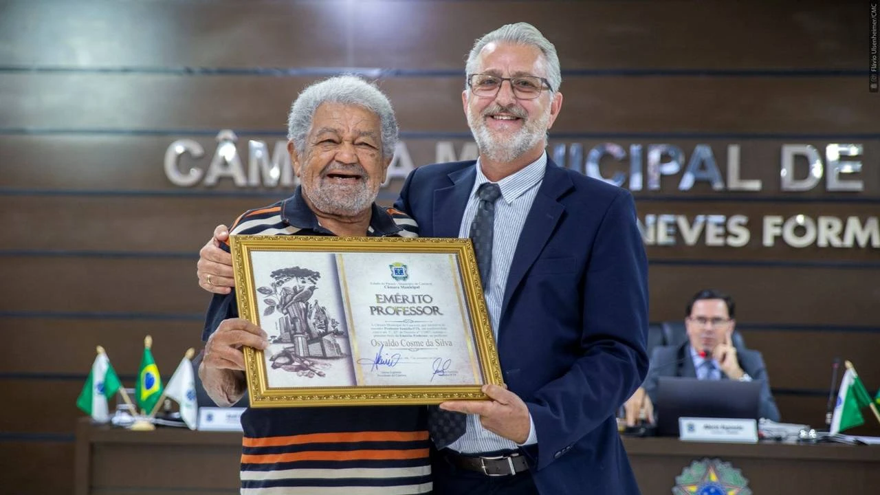 Osvaldo Cosme é homenageado e recebe título de Emérito Professor em sessão na Câmara de Vereadores