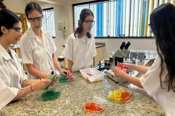 Para chegar ao resultado, os estudantes pesquisaram possíveis métodos de desenvolvimento, fizeram a coleta do material e a preparação no laboratório. Aos poucos, testaram as proporções até alcançar a receita adequada. Os projetos são realizados na disciplina de Ciência Conectada, que reúne Biologia, Física e Química, e serão apresentados para os estudantes do Ensino Fundamental Anos Iniciais, além de familiares e convidados.