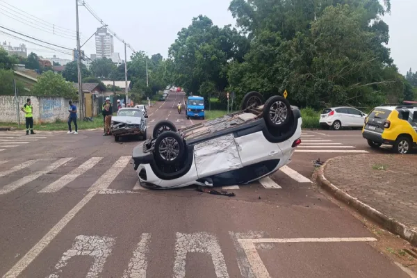 Condutor sem CNH é flagrado pela Polícia Militar após capotamento na Rua Rio de Janeiro