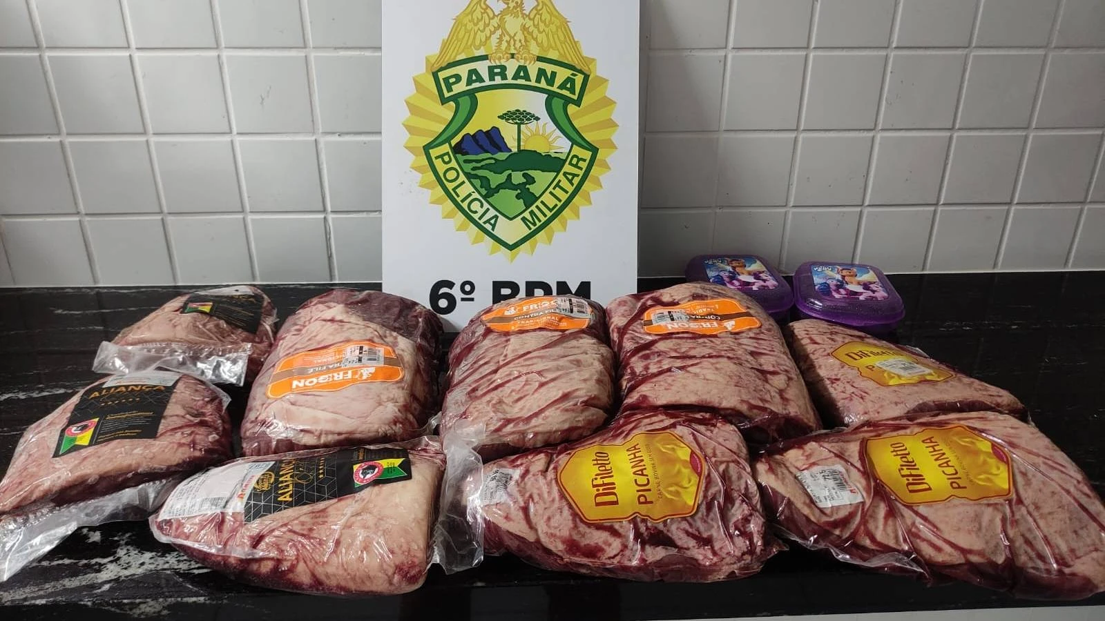 Segundo informações, um funcionário de um supermercado percebeu que um casal escondeu peças de carne em suas roupas e bolsas. Em seguida, eles tentaram deixar o estabelecimento sem efetuar o pagamento. O solicitante, junto à equipe de segurança do supermercado, deteve o casal até a chegada da Polícia Militar.