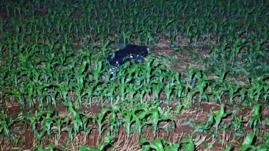 A vítima foi lançada aproximadamente 40 metros do local da batida e caiu dentro de uma lavoura de milho.