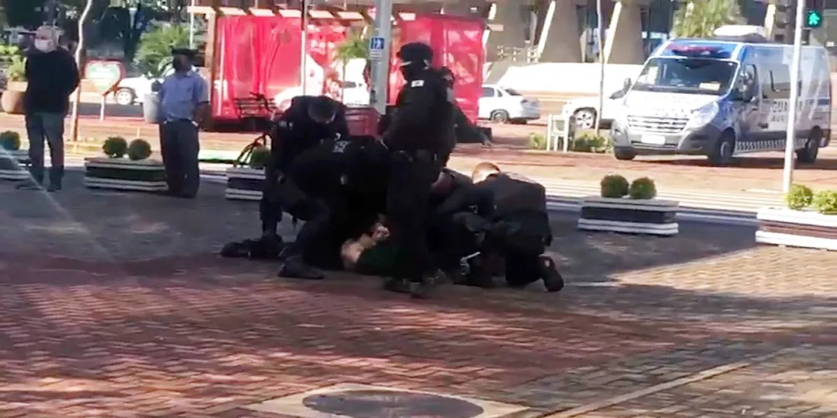 Homens não usam máscara, causam tumulto e são detidos pela GM, durante fiscalização no centro