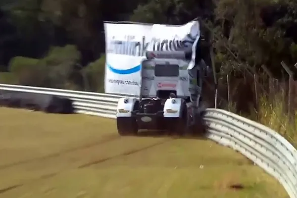 Piloto sai da pista e ‘salta’ sob guard rail durante treino da Copa Truck em Cascavel