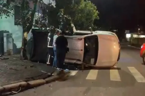 Uma forte colisão resultou no capotamento de uma caminhonete Hilux na noite deste domingo (26/11), no bairro Alto Alegre, em Cascavel.