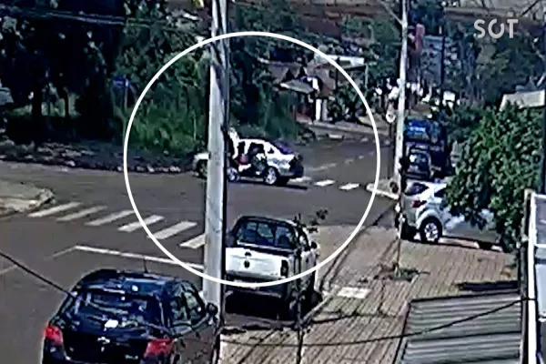 Na tarde deste sábado (02/12), uma câmera de monitoramento capturou imagens de um acidente de trânsito na Rua Mario Katuo Kato, esquina com Rua Luiz Justino Backes, no Jardim Presidente em Cascavel.