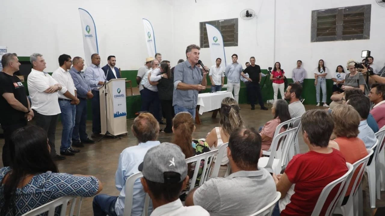 “Essas famílias moravam em área de risco. Na invasão da Melissa, algumas na invasão do Floresta, onde vai ser construído o parque linear. São 11 unidades e mais de 200 matrículas”, afirma o presidente da Cohavel, Vinícius Boza.