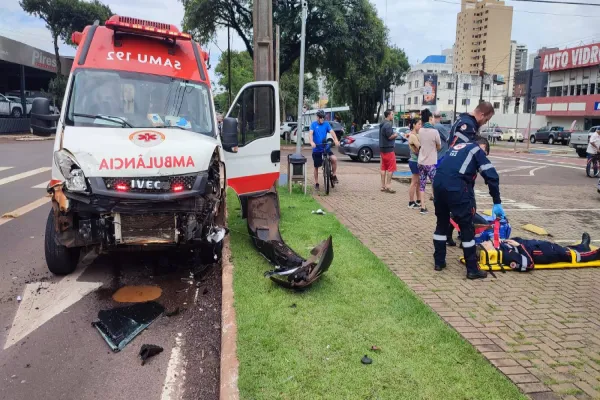Ambulância do Samu se envolve em grave colisão de trânsito no centro de Cascavel