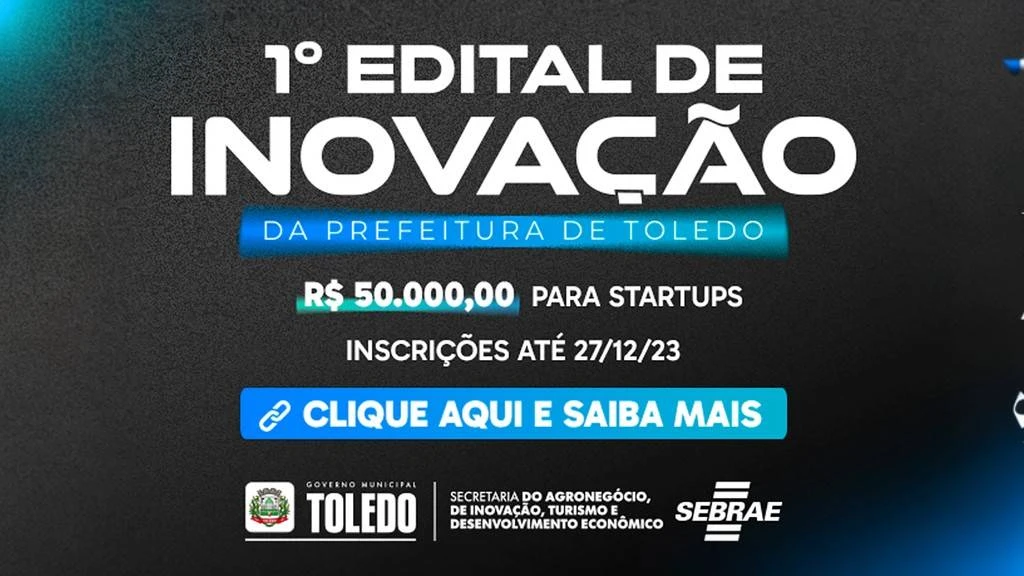 A Prefeitura de Toledo lançou o 1º Edital de Inovação, com base na Lei Complementar Nº 182/21, com o intuito de contratar startups para solucionar problemas indicados por servidores municipais. Neste primeiro edital, o desafio é de informatizar e integrar toda a gestão dos atestados de saúde dos servidores públicos municipais. As inscrições podem ser feitas até o dia 27 de dezembro de 2023 por meio de formulário eletrônico.
