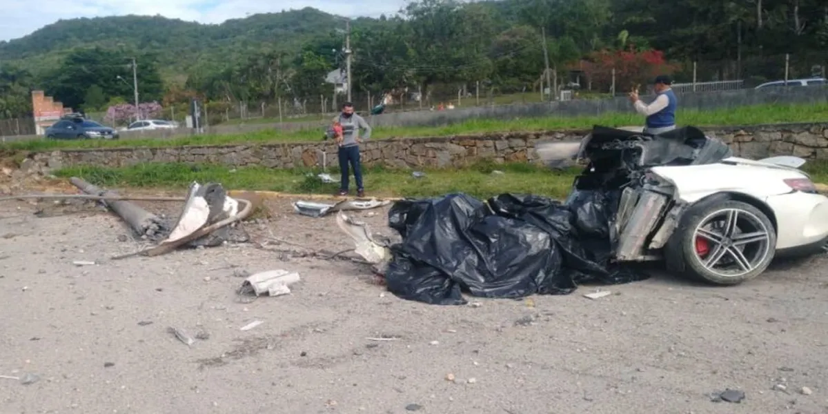 Houve uma colisão lateral entre os carros. Após a batida, a Mercedes saiu da pista e bateu em um poste. O carro partiu ao meio com o impacto e o motorista morreu na hora.