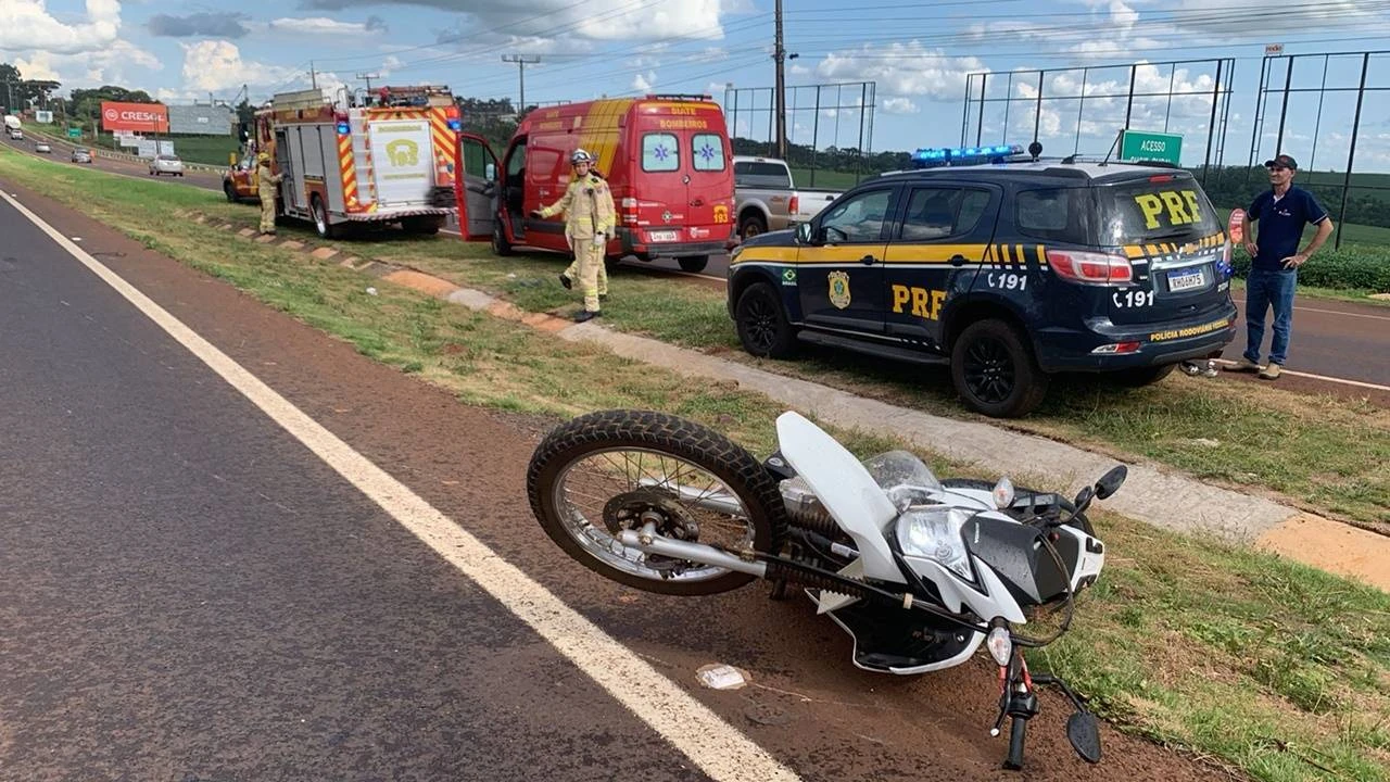 Jovem fica em estado grave em colisão de trânsito entre moto e S10 na BR-277, em Cascavel