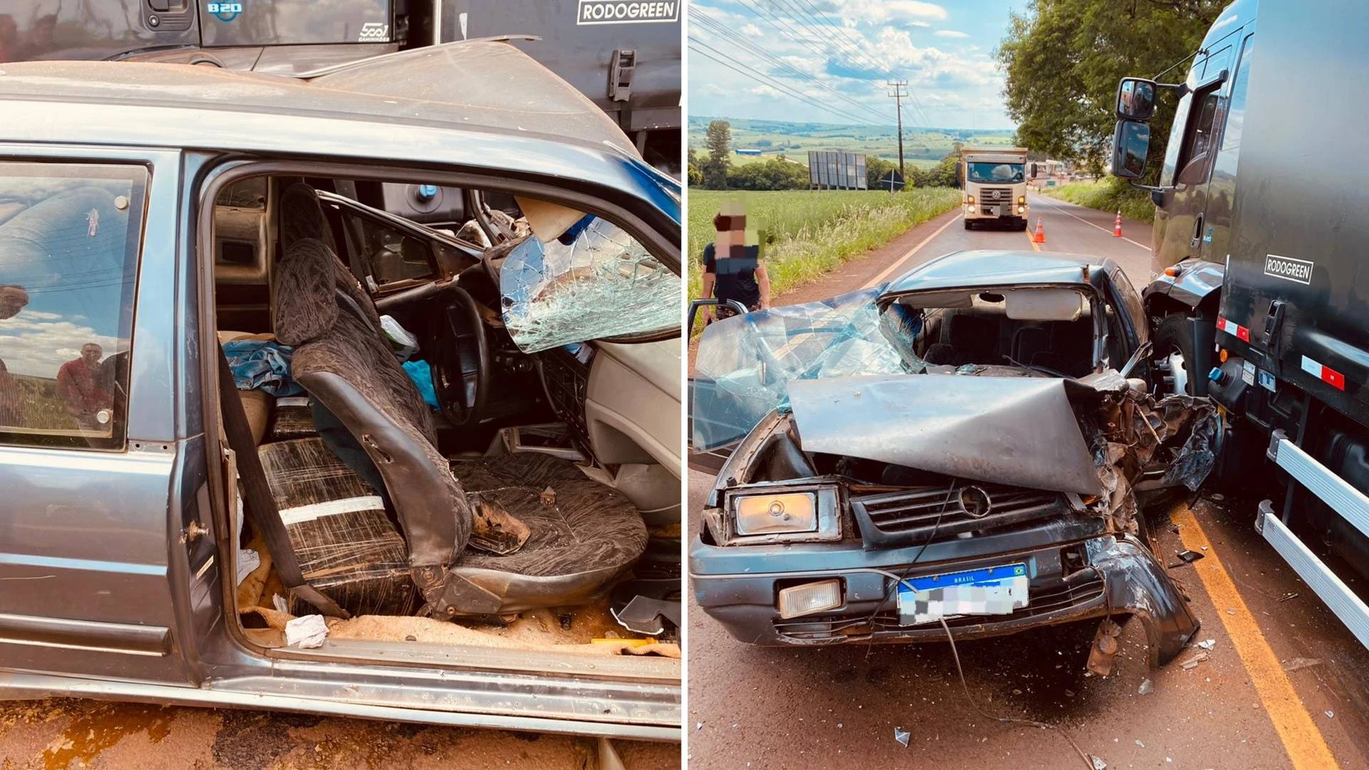 Santana carregado com maconha se envolve em forte colisão na PR-317, em Formosa do Oeste