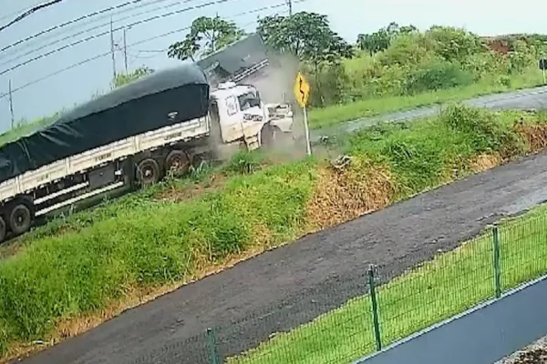 Uma câmera de segurança registrou um grave acidente envolvendo duas carretas na BR-163, entre as cidades de Santa Lúcia e Capitão, no oeste do Paraná, nesta terça-feira (02). As imagens impressionantes mostram o momento da colisão e os danos severos causados aos veículos de carga.