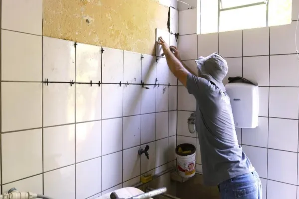 São intervenções nas partes elétrica, hidráulica, estrutural e de acessibilidade que estão sendo realizadas por uma equipe multidisciplinar formada por pedreiro...