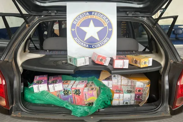 Ao realizar a vistoria, os agentes encontraram várias caixas contendo os produtos, avaliados em um total de R$ 60 mil. Diante do flagrante delito, o veículo foi apreendido pela Receita Federal, enquanto o indivíduo foi encaminhado à Delegacia da Polícia Federal para a adoção das medidas legais cabíveis.