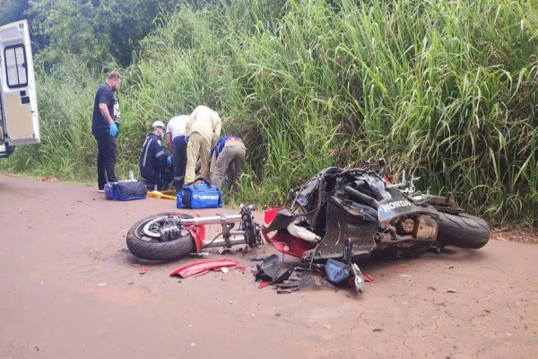 Motocicleta fica destruída em grave colisão de trânsito na PR-486, em Cascavel