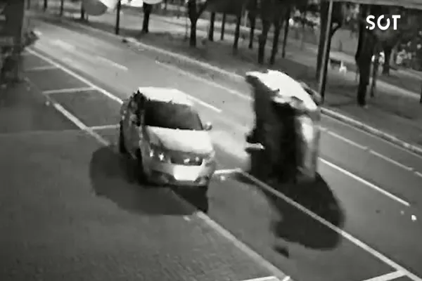 Imagens de câmeras de monitoramento registraram um capotamento na madrugada deste sábado (20/01) no centro de Cascavel. O vídeo revela que um Volkswagen Fox seguia pela Avenida Brasil quando, próximo à rua Marechal Rondon, colidiu com um Fiat Siena estacionado.