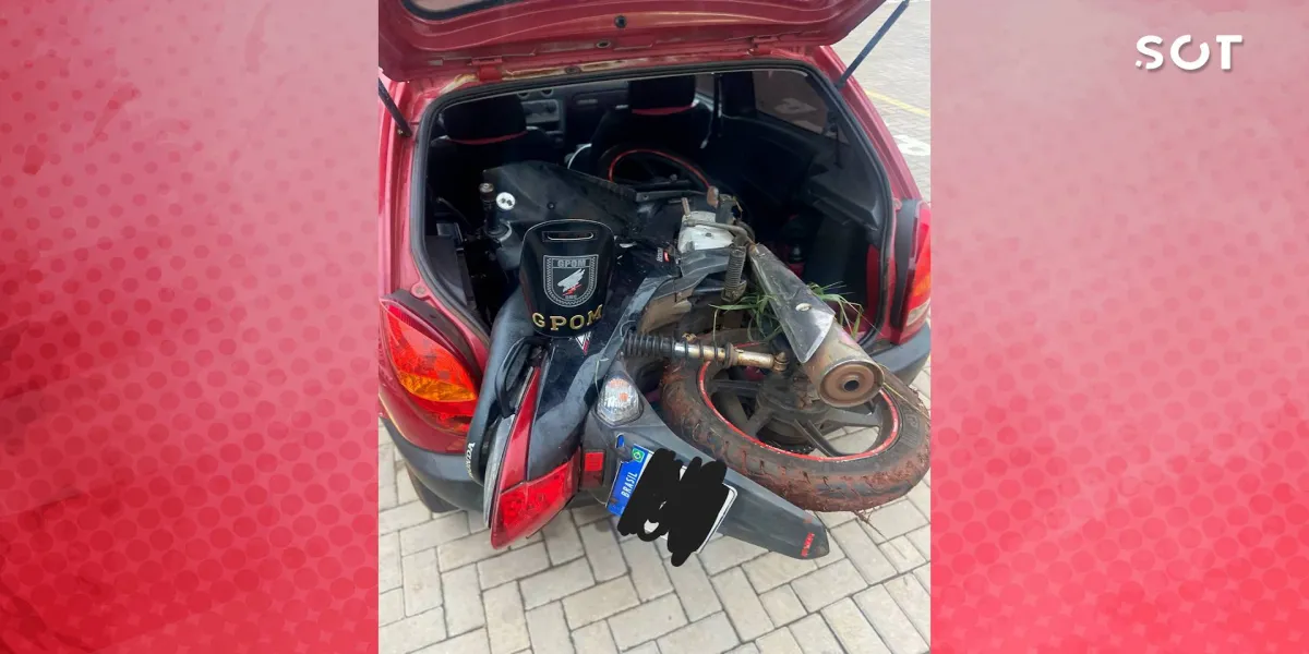 Os agentes observaram uma motocicleta sendo transportada no bagageiro de um veículo Celta e decidiram realizar a abordagem.