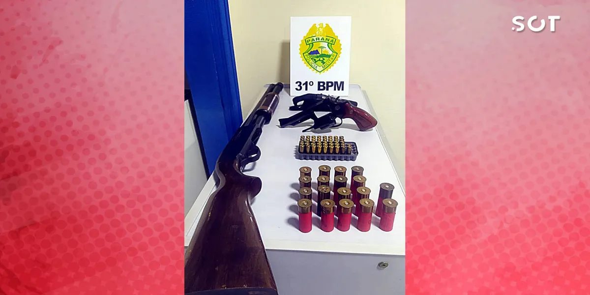 Foram encontradas e apreendidas duas armas: uma escopeta calibre 12, municiada com 18 cartuchos, e um revólver Taurus calibre 38, com 42 munições intactas do mesmo calibre.