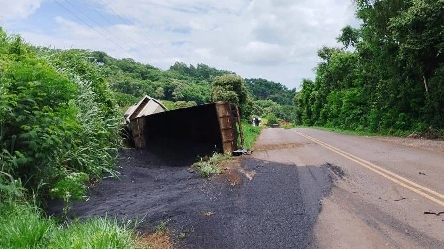 No início da tarde desta segunda-feira (22), um incidente mobilizou equipes de resgate na PR-484, em Boa Vista da Aparecida, quando um caminhão que transportava aproximadamente 17 toneladas de massa asfáltica tombou. A carga seria descarregada cerca de 2 km adiante, na região do distrito de Alto Alegre do Iguaçu, em Capitão Leônidas Marques, onde a empresa terceirizada prestava serviços para melhorias na pista.