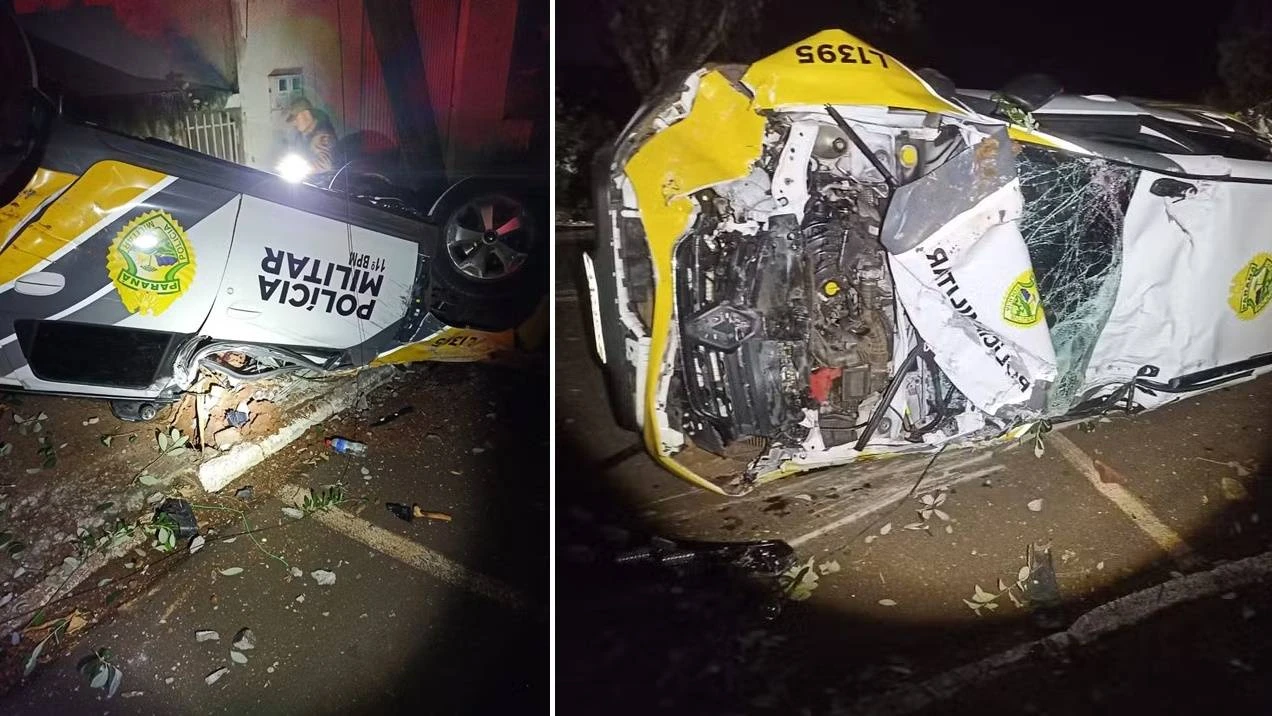 Corumbataí do Sul, PR - Na noite de terça-feira (23), dois policiais militares ficaram feridos após a viatura em que estavam colidir contra um poste e capotar durante uma tentativa de abordagem a um veículo suspeito, em Corumbataí do Sul, no centro-oeste do Paraná, conforme informações da Polícia Militar (PM).