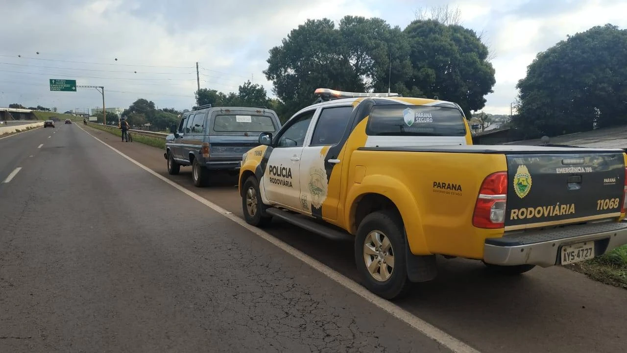 Uma equipe da Policia Rodoviária Estadual realizava patrulhamento pela rodovia PRC-467, quando na altura do km 111+800m, avistou uma caminhonete de cor azul, placas ABR-7364, parada no acostamento da rodovia.
