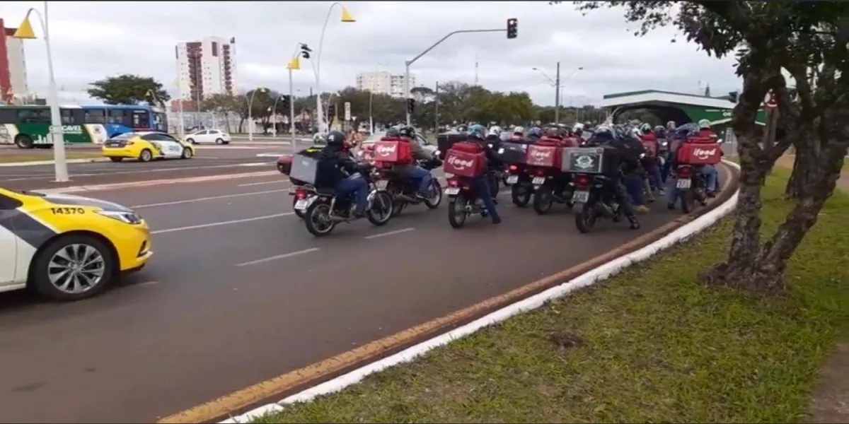 Na tarde desta quarta-feira (01), vários motociclistas que realizam entregas de Dlivery na cidade de Cascavel, fazem carreata.