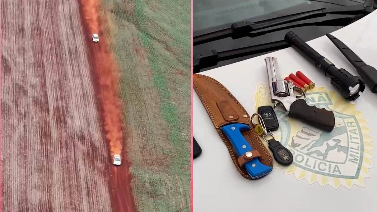 Diante disso, o proprietário da imóvel dirigiu-se até a sede da Cia de polícia militar do município, mostrando as imagens e explicando a situação à guarnição de serviço. A equipe deslocou-se até o local e, ao visualizar a viatura, os três fugiram, adentrando uma região de mata. Iniciou-se uma busca, sendo solicitado apoio ao BPFRON, que prontamente enviou uma equipe ao local.