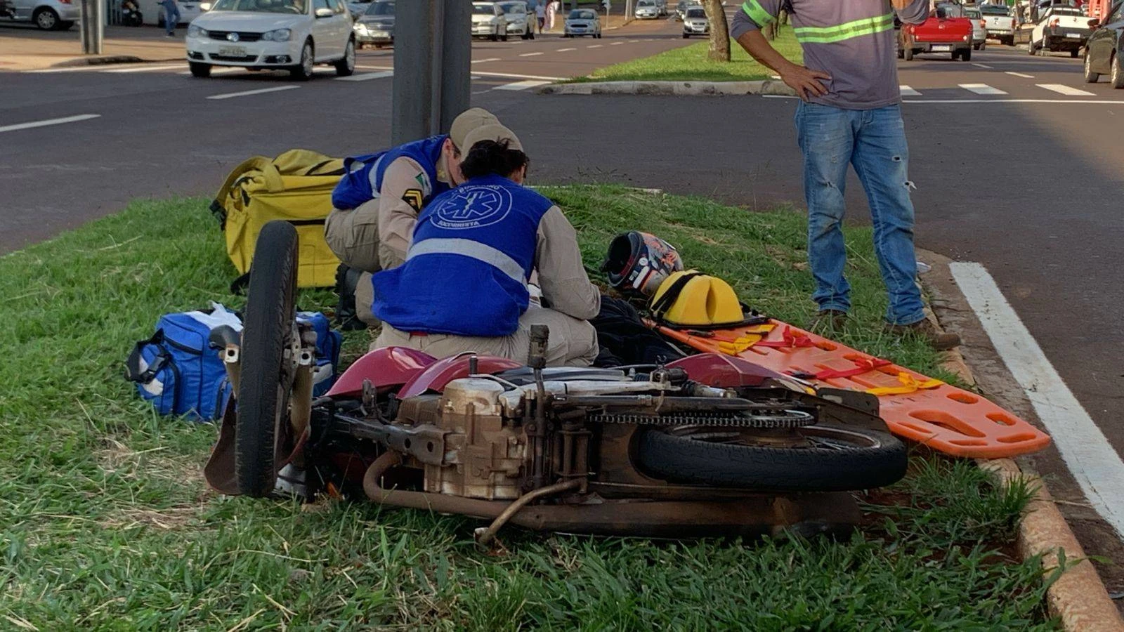 Motociclista sofre ferimentos em braço e mão após forte colisão na Avenida Rocha Pombo em Cascavel