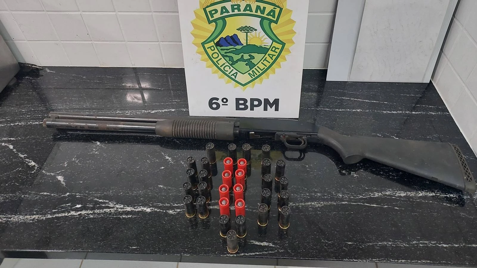 Diante da situação, o abordado autorizou a equipe a realizar buscas no terreno, momento em que um dos policiais encontrou a espingarda escondida sobre o telhado da casa, nos fundos da residência. Após a descoberta da arma, o indivíduo admitiu possuir a mesma há anos, alegando ter adquirido por três mil e quinhentos reais.