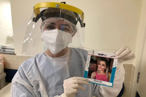 Reconhecer uma pessoa e poder chamá-la pelo nome parece algo tão simples, mas não para quem trabalha na Ala Covid-19. A paramentação, que envolve gorro, luvas, aventais, máscara e face shield, faz com que a identificação seja mais difícil entre os colegas. E foi após perceber essa dificuldade que a equipe de Psicologia do Hospital Universitário do Oeste do Paraná (Huop) proporcionou um crachá diferenciado, contendo uma foto, conforme a escolha do profissional, além do nome e função. “Eles trabalham o tempo inteiro paramentados, sem nenhum acessório, somente com os olhos de fora. Com o crachá é possível chamar o colega pelo nome, e sabemos que é muito bom ser reconhecido. A foto maior também é uma maneira de manter a personalidade de cada um que está lá dentro”, explica a psicóloga, Sheila Taba.