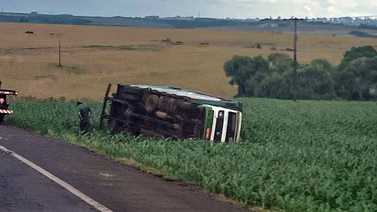 Segundo relatos, o motorista do veículo transitava pela rodovia no sentido Cascavel quando, próximo ao km 223, perdeu o controle da direção, resultando no tombamento do caminhão.