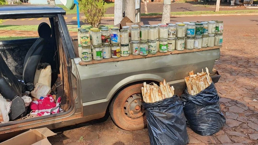 Com os mesmos foram encontrados um garrucha calibre 36 e 04 cartuchos do mesmo calibre, além de 60 metros de rede de pesca, molinete, vara, 40 metros de espinhel e material para acampamento.