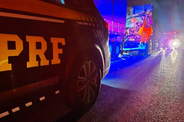 Imagens do local mostram que um dos veículos teve a cabine gravemente danificada devido à força do impacto. Apesar da gravidade da colisão, não houve registro de vítimas.