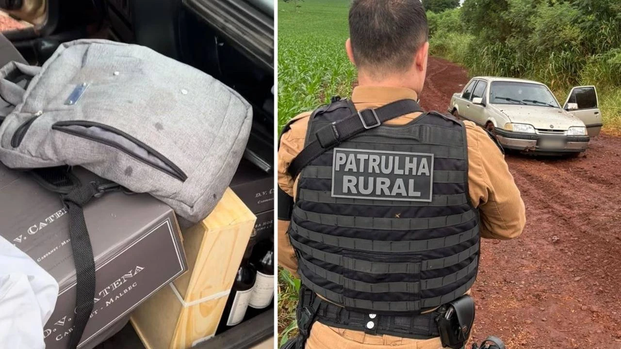 Patrulha Rural apreende veículo carregado com vinhos contrabandeados em estrada rural de Corbélia